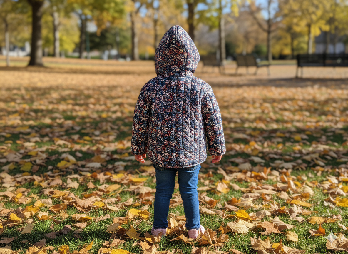 Girls Puffer quilted Coat–Printed Shell/ Hooded Coat Warm